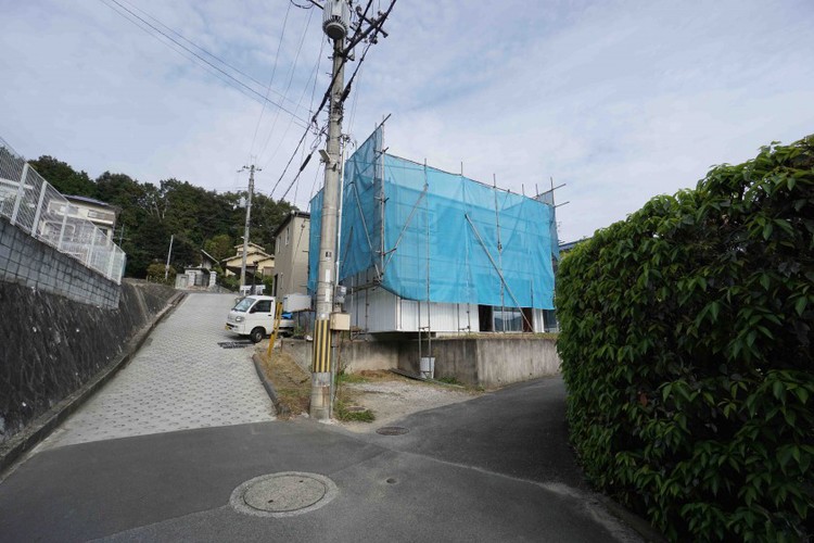 敷地は山の斜面を造成した郊外の住宅街にある角地。